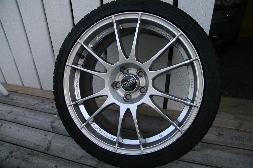 Har en uppsättning OZ fälgar i storleken 18*8 ET48 5/100, däcken som sitter på har måtten 225/40-18″.