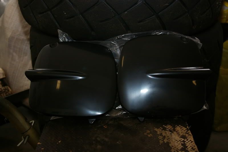 Har en uppsättning oanvända, olackade dimljuskåpor.