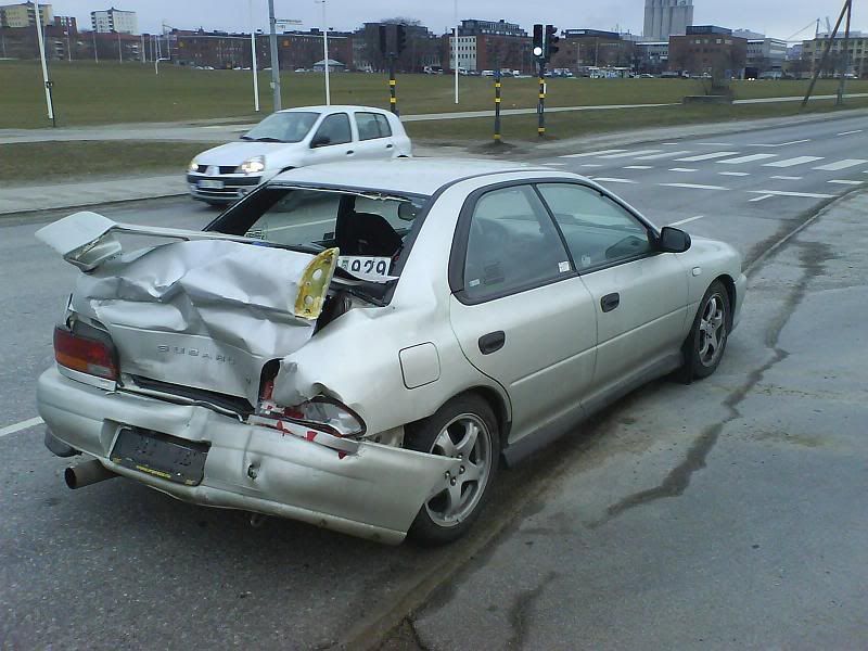 Man börjar bli lite rädd. Är gamla Imprezan så lite värd i försäkringsbolagens ögon och så pass dyr att laga att minska krockskada och bilen åker till skroten?