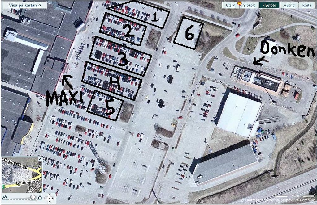 DeltagareGrejen är ju den att 1,2,3,4,5 alltid är fyllda med folk som är och handlar på Maxi eftersom det fortfarande är öppet vid den tiden.. Men är vi där en halvtimme tidigare kanske vi kan parkera efter en hel rad på ordinarie träff-platts?